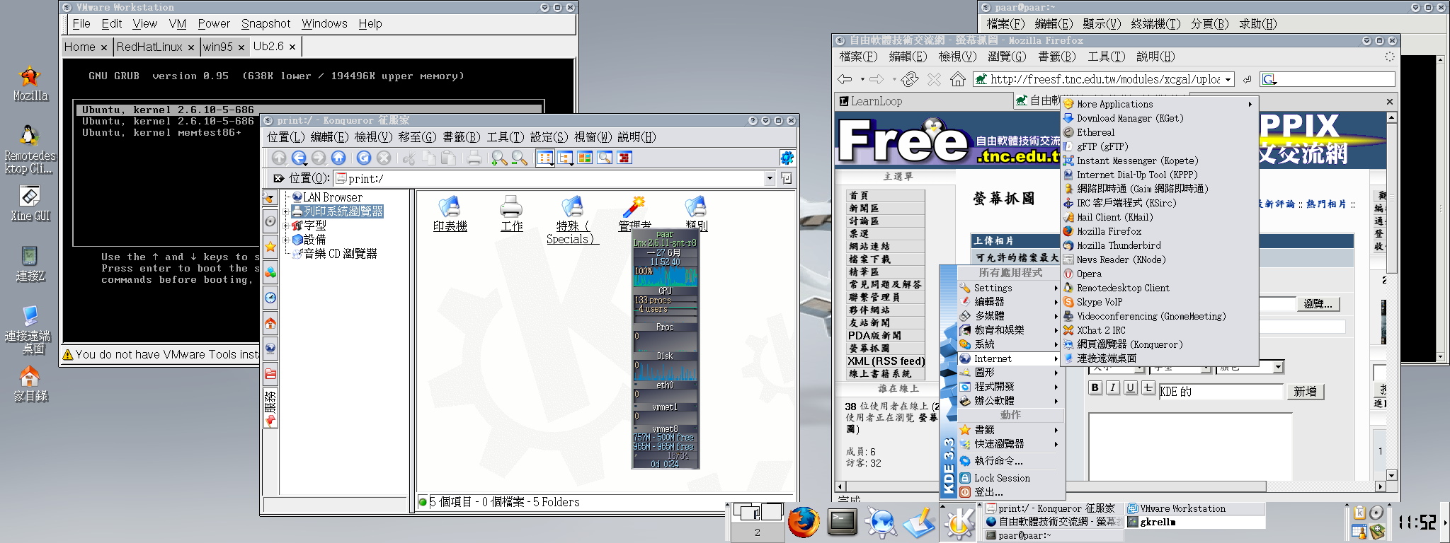 是用 X 啟用雙螢幕顯示, xinerama 選項 KDE 加上 xinerama 的 USE flag